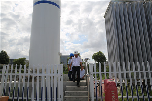 在加氣工藝區(qū),張建平一行帶上頭盔,深入到加氣站的核心區(qū)塊了解加氣站的運行狀況,看到嶄新的設(shè)備和整潔的環(huán)境,張建平頻頻點頭。