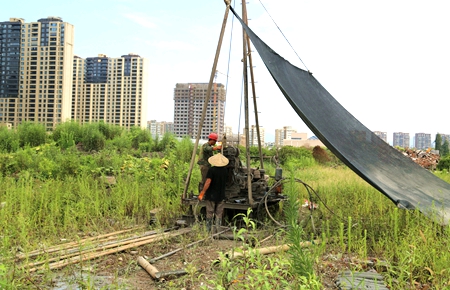 “轟隆隆,轟隆隆。”走進(jìn)位于黃巖區(qū)西城街道的雅林地塊施工現(xiàn)場,一眼便看見正在工地上高速運轉(zhuǎn)的勘探機(jī)械和施工人員忙碌的身影。
