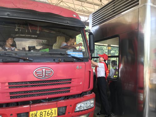圖為收費所員工給過往司乘人員送清涼品