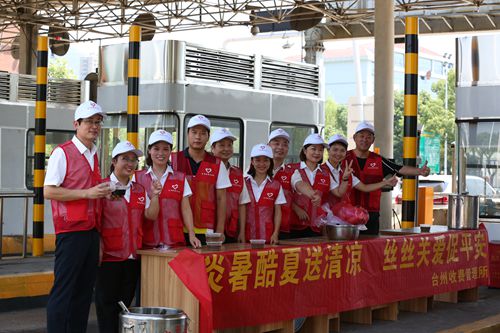 同日開始,臺州收費所組織志愿者開展“炎暑酷夏送清涼,絲絲關(guān)愛促平安”為主題的送清涼活動,所內(nèi)黨員、入黨積極分子及業(yè)務(wù)骨干等20多名志愿者身著統(tǒng)一的志愿者服飾,在車道的安全島上拉起橫幅,搭起“便民服務(wù)臺”,免費向過往人員送上防暑藥品和所里食堂自制的綠豆湯、青草糊等解暑飲品,喝在口中,甜在心里,司乘人員紛紛贊不絕口。