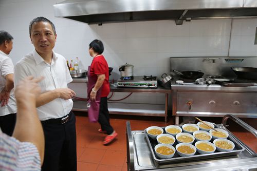 圖為集團(tuán)總經(jīng)理張建平了解食堂情況