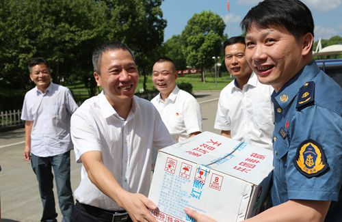 圖為集團(tuán)副總經(jīng)理章海峰送清涼現(xiàn)場