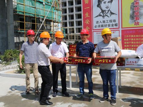 8月10日上午,集團副總經(jīng)理羅小將和集團總工程師江輝分別在總經(jīng)理助理李軍鋒和工程部負責人、市政公司負責人的陪同下,到椒江文鼎苑項目工地和黃巖、路橋、溫嶺等地方交警駐地,慰問廣大施工人員和一線執(zhí)勤民警。
