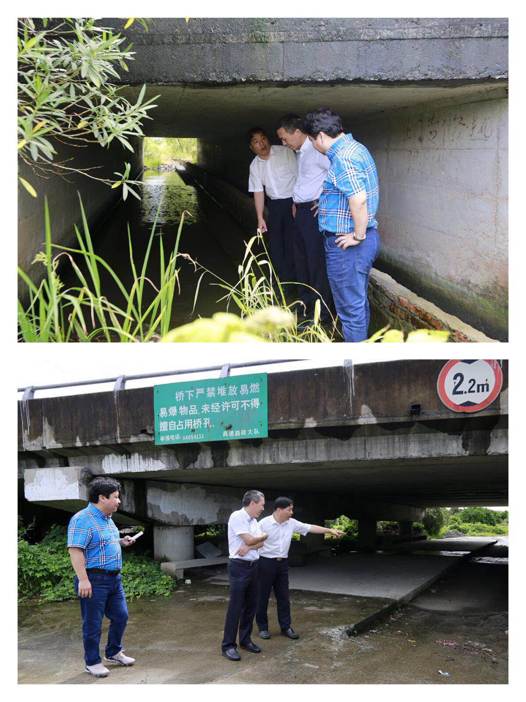 圖為集團總經理張建平聯系當地村長盡快處理橋下空間雜物