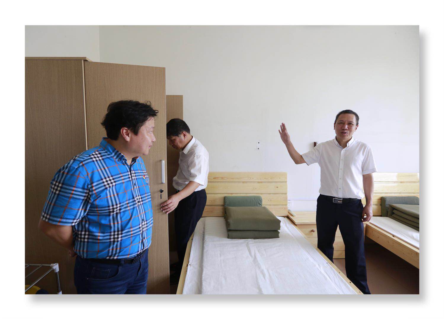 圖為集團總經理張建平在溫嶺西收費所檢查員工宿舍區(qū)