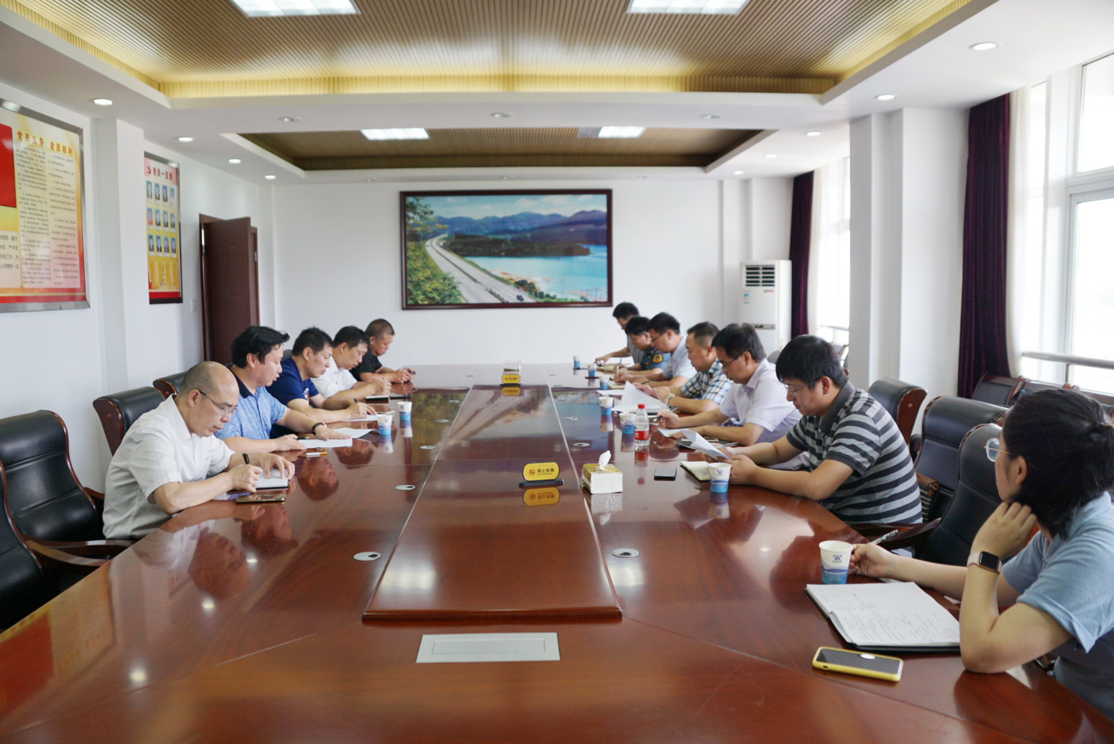 市公路局局長(zhǎng)馬德勝一行對(duì)公司三防及養(yǎng)護(hù)工作進(jìn)行檢查 8月6日上午,市公路局局長(zhǎng)馬德勝一行在高速集團(tuán)總工程師江輝的陪同下對(duì)公司路段防汛、防臺(tái)、防旱及養(yǎng)護(hù)工作進(jìn)行檢查,并召開(kāi)會(huì)議。 會(huì)上,江輝及工程部負(fù)責(zé)人匯報(bào)了公司養(yǎng)護(hù)工作完成情況,三防工作落實(shí)情況及下階段重點(diǎn)工作安排等。為達(dá)到“零傷亡,少損失”的三防目標(biāo),公司在道路管養(yǎng)水平提升和提高應(yīng)急能力上下功夫,工程部堅(jiān)持“以防為主、防治結(jié)合”,認(rèn)真實(shí)施養(yǎng)護(hù)工作及重點(diǎn)工作,確保公路行車(chē)安全暢通。