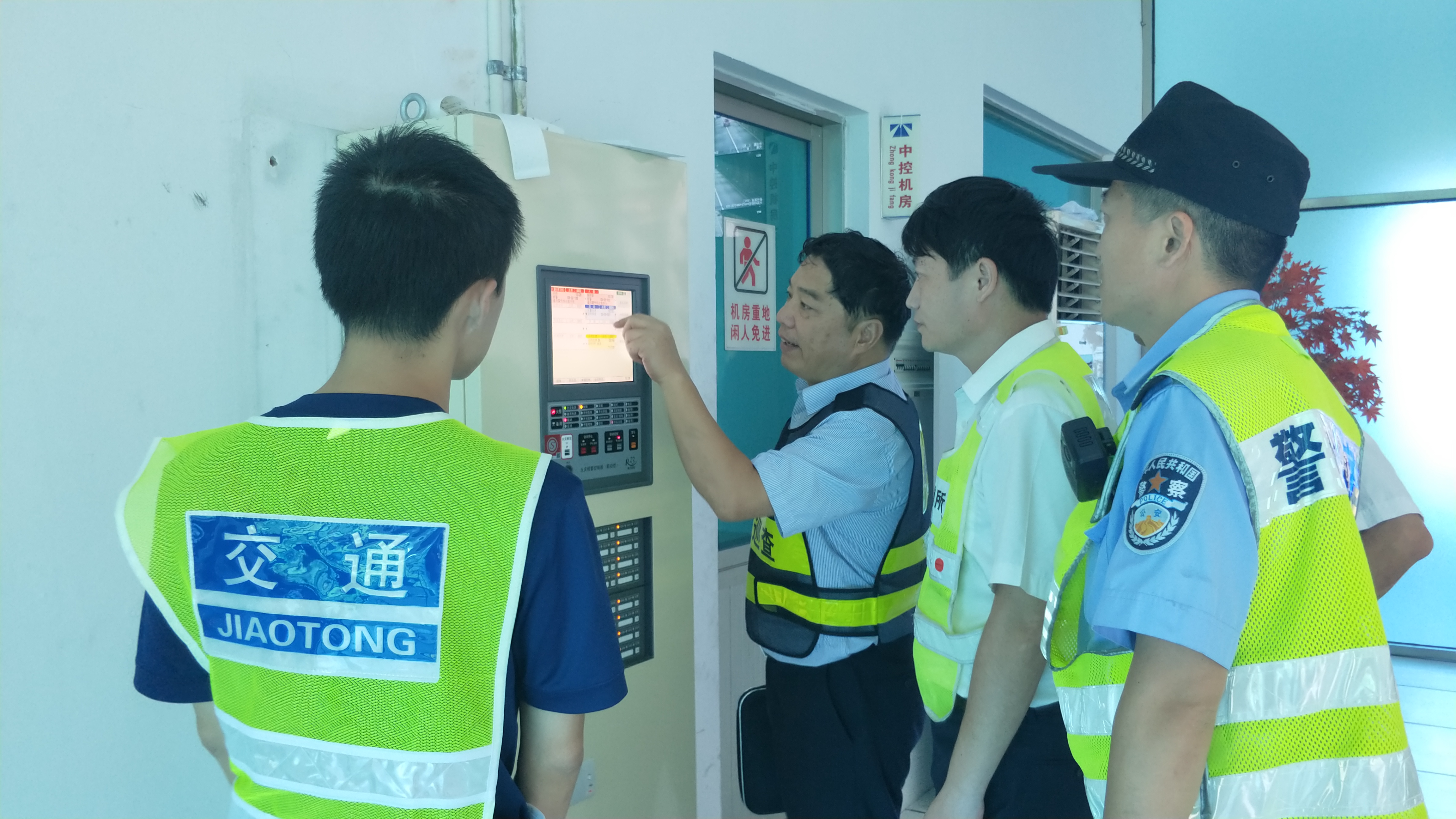 圖為項同富一行檢查大溪嶺隧道所中控系統(tǒng)