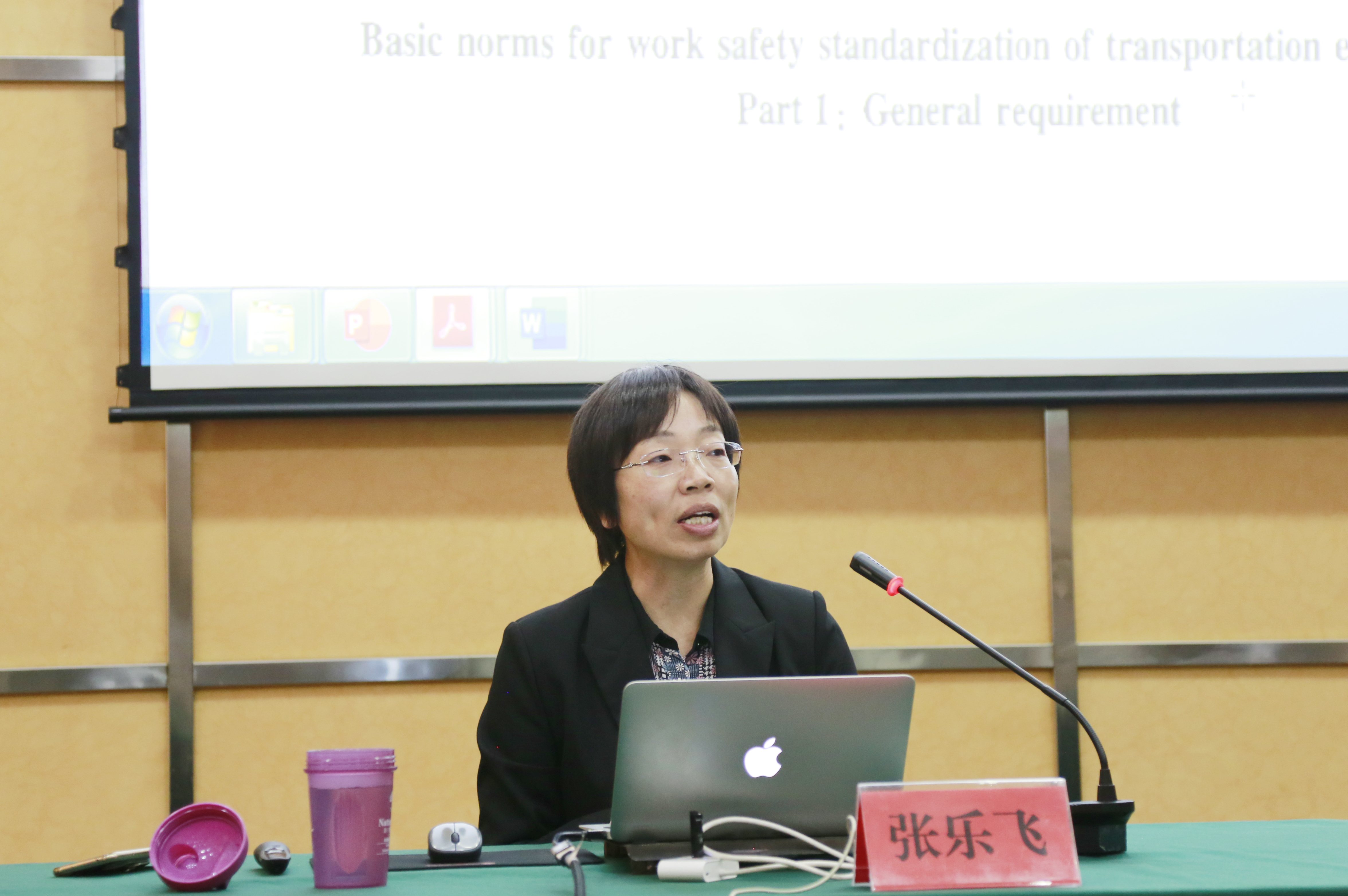 圖為項(xiàng)同富主持培訓(xùn) 本次培訓(xùn)邀請(qǐng)了高級(jí)工程師、安標(biāo)考評(píng)員張樂飛到場(chǎng)為大家講解培訓(xùn)內(nèi)容。此前,她完成過對(duì)浙江滬杭甬高速公路股份有限公司、浙江金麗溫高速公路有限公司、黃山長(zhǎng)江徽行高速公路有限責(zé)任公司等國(guó)一級(jí)安標(biāo)指導(dǎo)工作,并順利通過考評(píng)。