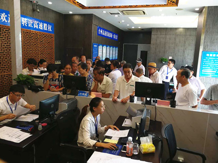 圖為路橋收購(gòu)點(diǎn)股東辦理股權(quán)轉(zhuǎn)讓現(xiàn)場(chǎng)