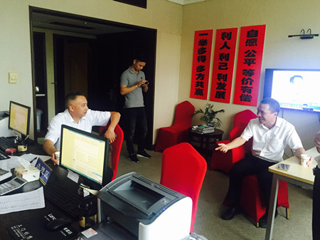 圖為集團(tuán)副董事長(zhǎng)、總經(jīng)理張建平向股東耐心解釋稅收優(yōu)惠政策 在三門收購(gòu)點(diǎn),遇到一位正猶豫不決的股東,張建平耐心地向他解釋了相關(guān)政策,直接明了地消除他內(nèi)心顧慮,最后股東滿意地簽署了股權(quán)轉(zhuǎn)讓協(xié)議。 楊靜