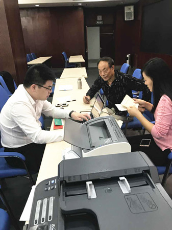 戴著一副黑框眼鏡,憨實(shí)魁梧的身形,說(shuō)話輕言慢語(yǔ)。據(jù)說(shuō),某天下班后,還坐在椅子上打電話,一臉溫柔,竊竊私語(yǔ),同事一直以為他在談戀愛(ài),這打完了電話,才知道是接到股東的電話了,跟對(duì)方在解釋股權(quán)收購(gòu)政策呢。 在股權(quán)流動(dòng)收購(gòu)點(diǎn),小李是電腦操作人員,所以也不大參與解說(shuō)工作。只是那天正好一位阿婆坐在了電腦對(duì)面,說(shuō)話之間才知大字不識(shí),是聽鄰居說(shuō)的,就自己摸到這里了。正好手里也空了,李騰飛頓頓身子,放松下來(lái),以黃巖特有的吳言儂語(yǔ)跟阿婆解釋了十幾分鐘,果然,白凈的臉上是一臉的和氣,沉穩(wěn)又實(shí)在,確實(shí)是傳說(shuō)中的暖男一枚呀。末了,幫阿婆代簽了字,讓阿婆按了手指印。 但是,在工作的時(shí)候,小李讓我們見識(shí)到了“騰飛”的效果。流動(dòng)點(diǎn)只設(shè)一臺(tái)筆記本電腦,線上操作都?xì)w他,在大溪鎮(zhèn)政府,來(lái)的股東有百十號(hào),流動(dòng)小組包括駕駛員何杰靚迅速開展了流水作業(yè)。此時(shí)此刻,小李那一雙肥白的大手在小巧的鍵盤上十指翻飛,靈活敏捷,操作如行云流水,打印機(jī)刷刷地響,不停飛出一份份協(xié)議,傳到下一個(gè)工作人員這里。這才知道,每一個(gè)人的名字都是名副其實(shí)的,“騰飛”的含義是在這里體現(xiàn)的呀。 鄭蔚