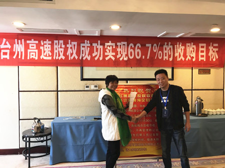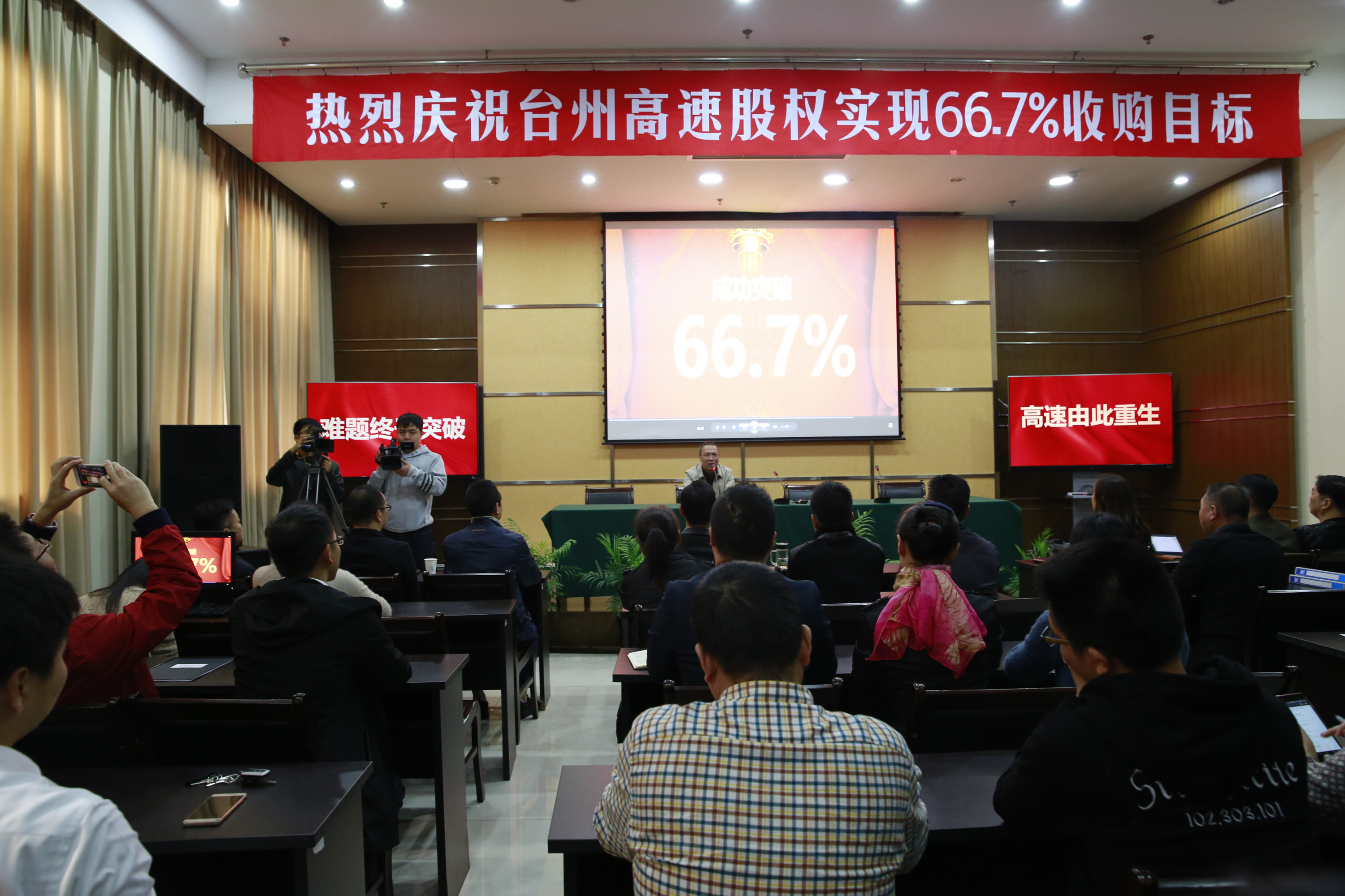 臺州高速股權集中和優(yōu)化工作領導小組辦公室主任、臺州高速集團總經(jīng)理張建平鄭重地宣布:“至此,全市共完成臺州高速股權轉讓6947萬股,臺州市屬國企及黃巖財務開發(fā)公司合計持股數(shù)1.441億股,完成了66.7%的預定收購目標?!?/span>