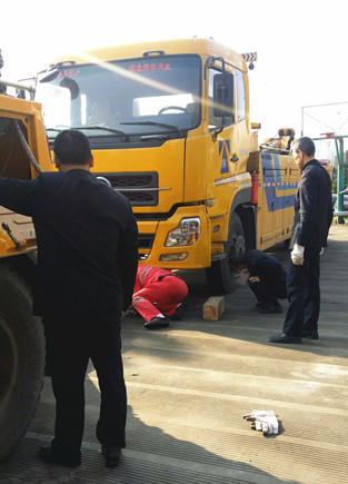 圖為演練現(xiàn)場 廣場上,當(dāng)指揮員下達(dá)“拖車兩次增高作業(yè)演練開始”口令后,拖車在輔助工的引導(dǎo)下,駕駛員將拖車緩緩地倒到故障車的前面,停穩(wěn)后,輔助工立馬從工具箱里拿出托叉、方木等附件,將托叉插入托叉座,調(diào)整好位置,駕駛員操縱操作手柄進(jìn)行第一次托舉鋼板作業(yè)。當(dāng)抬高一定高度后,輔助工將方木填在前輪胎下面,然后放下托臂,重新調(diào)整好位置,進(jìn)行第二次托舉工字梁作業(yè),直到達(dá)到安全高度,輔助工才抽出方木,駕駛員迅速將故障車拖離現(xiàn)場。兩次增高作業(yè)順利完成,演練達(dá)到了預(yù)期效果。 演練現(xiàn)場,氣氛熱烈,員工們針對復(fù)雜車型和去年拖車過程中發(fā)生的事故案例,相互探討,并紛紛表示在今后的工作過程中,要根據(jù)車型的實際情況,掌握各種作業(yè)技巧,同時要吸取事故教訓(xùn),增強(qiáng)安全意識,確保作業(yè)安全。 何先林