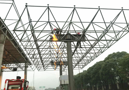 溫嶺西收費站位于大溪鎮(zhèn)大石一級公路起點處,改造前,收費站為四進六出十個車道。因臺州市區(qū)僅有一條南北縱向高速,玉環(huán)市、溫嶺市的車輛都要從溫嶺西這個收費站進出高速,造成該站每日出入車流量巨大。為了有效緩解出口車輛排隊等問題,集團提前謀劃,啟動溫嶺西收費車道拓寬工程。 而這項工程中最重要的就是鋼結構網(wǎng)架吊裝,鋼結構網(wǎng)架長18米,寬9.4米,重達15噸。為了減少集團通行費的損失和保證吊裝過程的安全,工程養(yǎng)護部與施工單位合力研究,專門編制了專項吊裝方案,動用了兩臺25噸吊機。