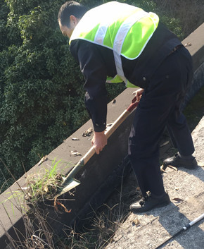 圖為清理后的屋頂排水溝 大溪嶺隧道管理所依山而建,落葉、塵土、沙石堆積極容易造成排水溝的堵塞,如汛期來臨,排水溝堵塞造成的隱患無窮。 所執(zhí)勤隊根據安排,排查配電房、管理房等汛期容易受災害影響的隱患,遵循“發(fā)現(xiàn)一處整治一處,整治一處銷號一處”的原則,對配電房、管理房的屋頂排水這一安全隱患和薄弱環(huán)節(jié)進行清理,以實際行動落實整改和消除隱患,確保2018年安全度汛。 陳智慧