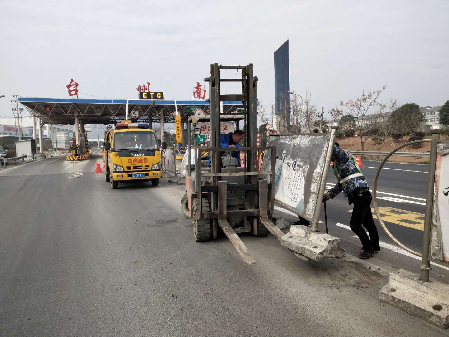零費(fèi)用清除沉重的廣告式隔離帶 “副站匝道外的廣告式隔離帶能不能幫忙清除下?” 在接到臺(tái)州南收費(fèi)所的“求助”電話后,施救中心負(fù)責(zé)人馬上發(fā)動(dòng)人員,迅速聯(lián)系了外協(xié)單位-----臺(tái)州市路橋通遠(yuǎn)車輛施救有限公司,開動(dòng)鏟車奔赴現(xiàn)場(chǎng)。 據(jù)悉,臺(tái)州南副站匝道廣告式隔離帶比較長(zhǎng),而且有損壞,不美觀而影響站所形象,需要全部更換成水馬。但是其底部的水泥墩非常沉重,人力不能搬動(dòng),所以該所希望施救中心幫忙清除這些廢舊物。