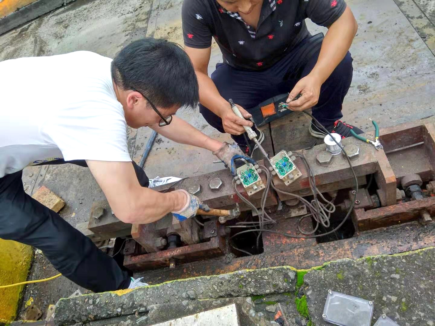 圖為中心隊(duì)員鄭軍發(fā)配合稱臺調(diào)試