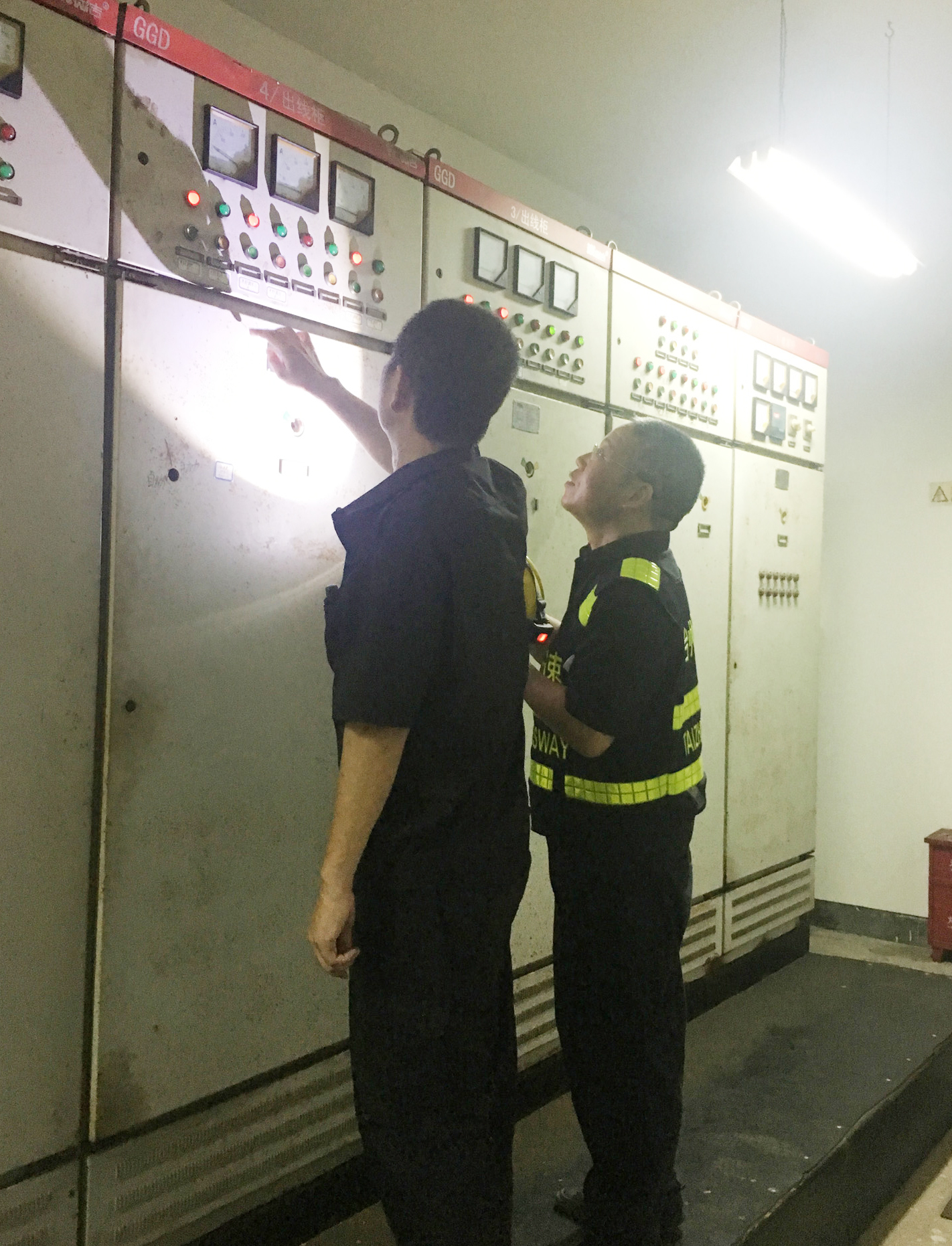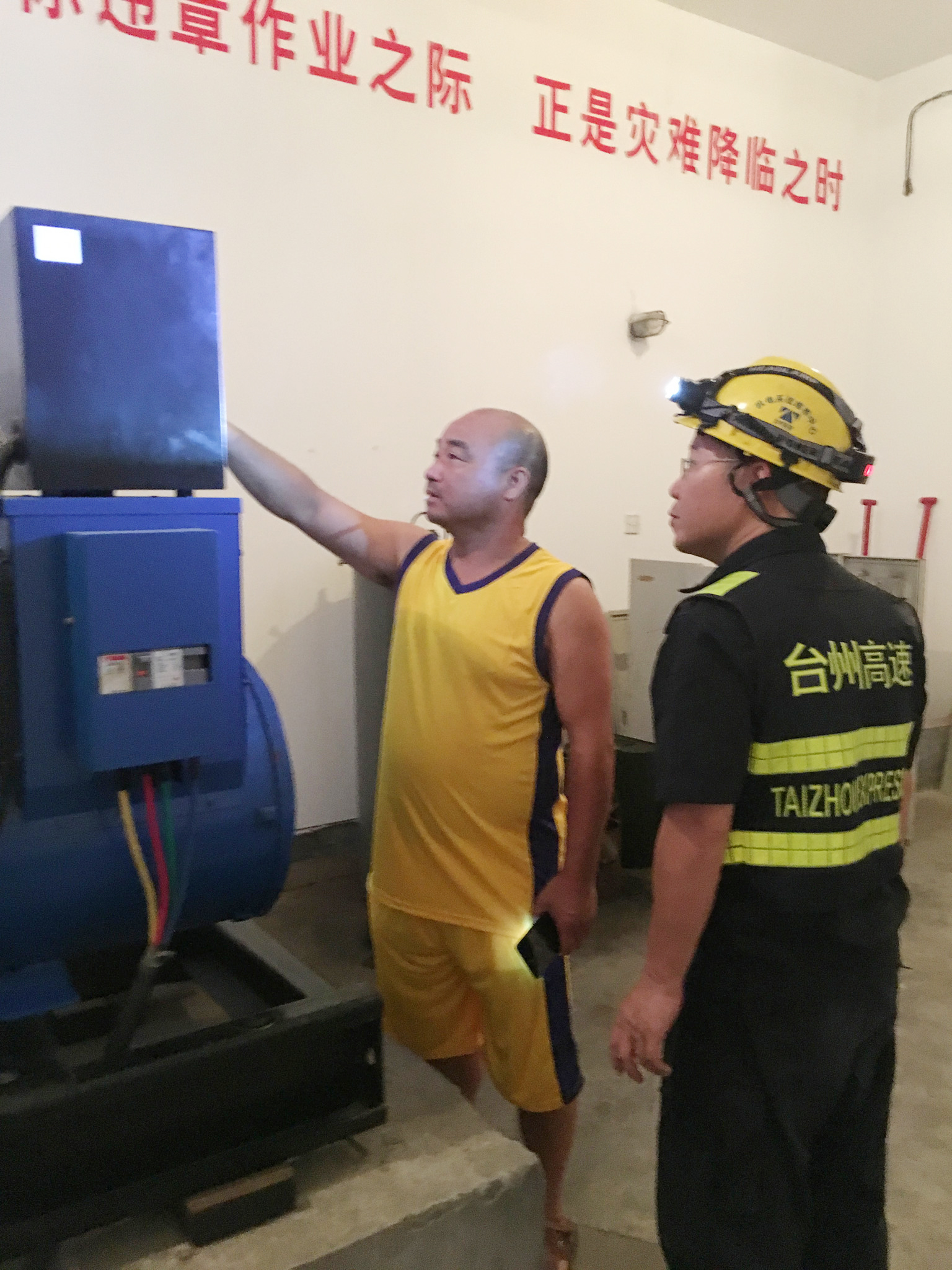 圖為搶修人員查看發(fā)電機(jī)運(yùn)行態(tài)況