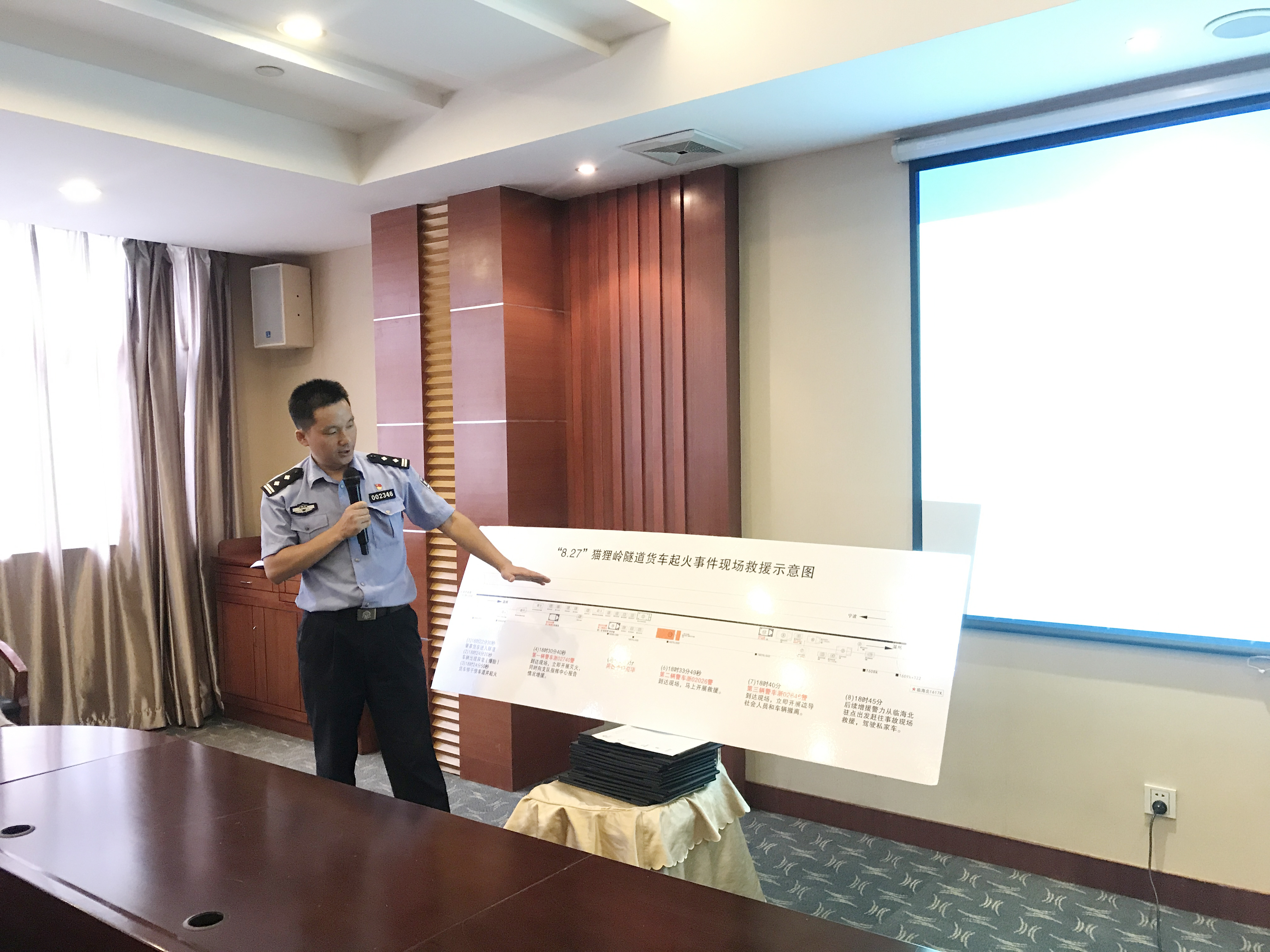 圖為培訓(xùn)現(xiàn)場(chǎng) 徐向道從險(xiǎn)情發(fā)生和救援兩個(gè)階段、善后處置及事件勘查四個(gè)要點(diǎn)出發(fā),回顧了“8.27”貓貍嶺隧道特大起火事件,并例舉2010年1月6日貨車起火,寶馬陪葬,甬臺(tái)溫高速大溪嶺隧道關(guān)閉7小時(shí),2016年5月16日臨海南收費(fèi)站出口“大貨車高速路上起火 司機(jī)駕車沖卡化險(xiǎn)為夷”等事件,指出隧道內(nèi)起火事件時(shí)有發(fā)生,形勢(shì)比較嚴(yán)峻,大溪嶺隧道、黃土嶺隧道都曾經(jīng)歷過(guò)火災(zāi)事件的考驗(yàn),隧道火災(zāi)事件防范及駕駛?cè)嘶馂?zāi)事件處置能力提升迫在眉睫,管理部門措施落實(shí)不到位要被問(wèn)責(zé)、追責(zé)。