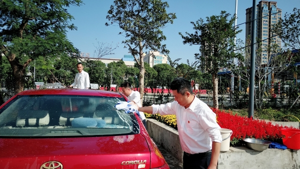 黨員服務群眾免費洗車 “等下車鑰匙拿給黨員同志,他們幫你免費洗車?!笔召M員張裴裴一上班就碰到這等好事。 11月6日上午,溫嶺西收費所黨支部組織黨員在所內(nèi)開展了免費義務洗車活動,一個上午共清洗10多輛汽車,受到群眾員工的好評。