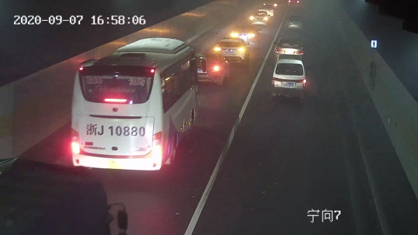 車子剛進(jìn)入隧道,火眼金睛的中控員徐海源立即察覺,鎖定該畫面,經(jīng)過仔細(xì)辨認(rèn),該車沒有火光源,可能是車輛故障導(dǎo)致的。由于貨車不停地冒出濃煙,散發(fā)的濃煙彌漫在整個(gè)隧道里,造成隧道內(nèi)的車輛視線不清,人員呼吸困難,后方途經(jīng)車輛紛紛打開雙閃燈,或緩行、或停車、或避讓,一時(shí)間,交通秩序混亂,大量的車輛滯留在隧道里,而后方來車越來越多,情況越來越緊急。中控員見狀,第一時(shí)間向監(jiān)控中心匯報(bào)情況,監(jiān)控中心要求密切關(guān)注該輛車的行駛情況,同時(shí),把該情況報(bào)告給執(zhí)勤隊(duì)長蔡星,他要求中控員打開寧向排風(fēng)扇,正向排風(fēng),疏散濃煙,同時(shí)做好應(yīng)急準(zhǔn)備工作。
