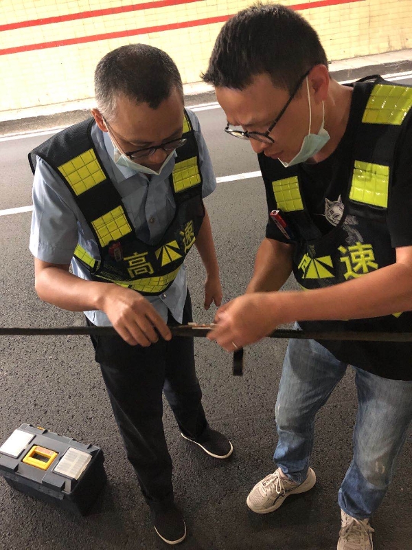 車流如潮的現(xiàn)場給管理所的保暢帶來了挑戰(zhàn)。面對雙節(jié)高峰,執(zhí)勤隊爭分奪秒分組進行有封閉主車道擺放安全防護;提醒來往車輛保持有效車距;查找受損電纜修復;高空作業(yè)包扎脫落電纜。那一刻,他們手頂橋架背影,彎腰查線時的動作,無疑是高速最美麗的風景。最后經過三個小時的搶修,被拉掉一邊的橋架及電纜終于重新固定恢復原位。