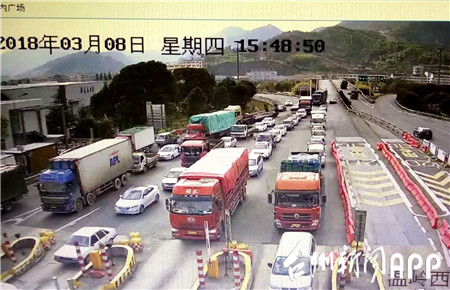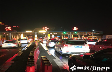 3月4日驚蜇雷鳴,大雨瓢潑,大批車輛涌向溫嶺西收費(fèi)所出口。
