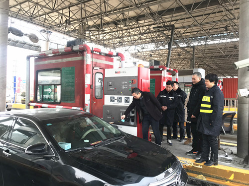 圖為公司總經(jīng)理張建平給過(guò)往司乘人員發(fā)卡