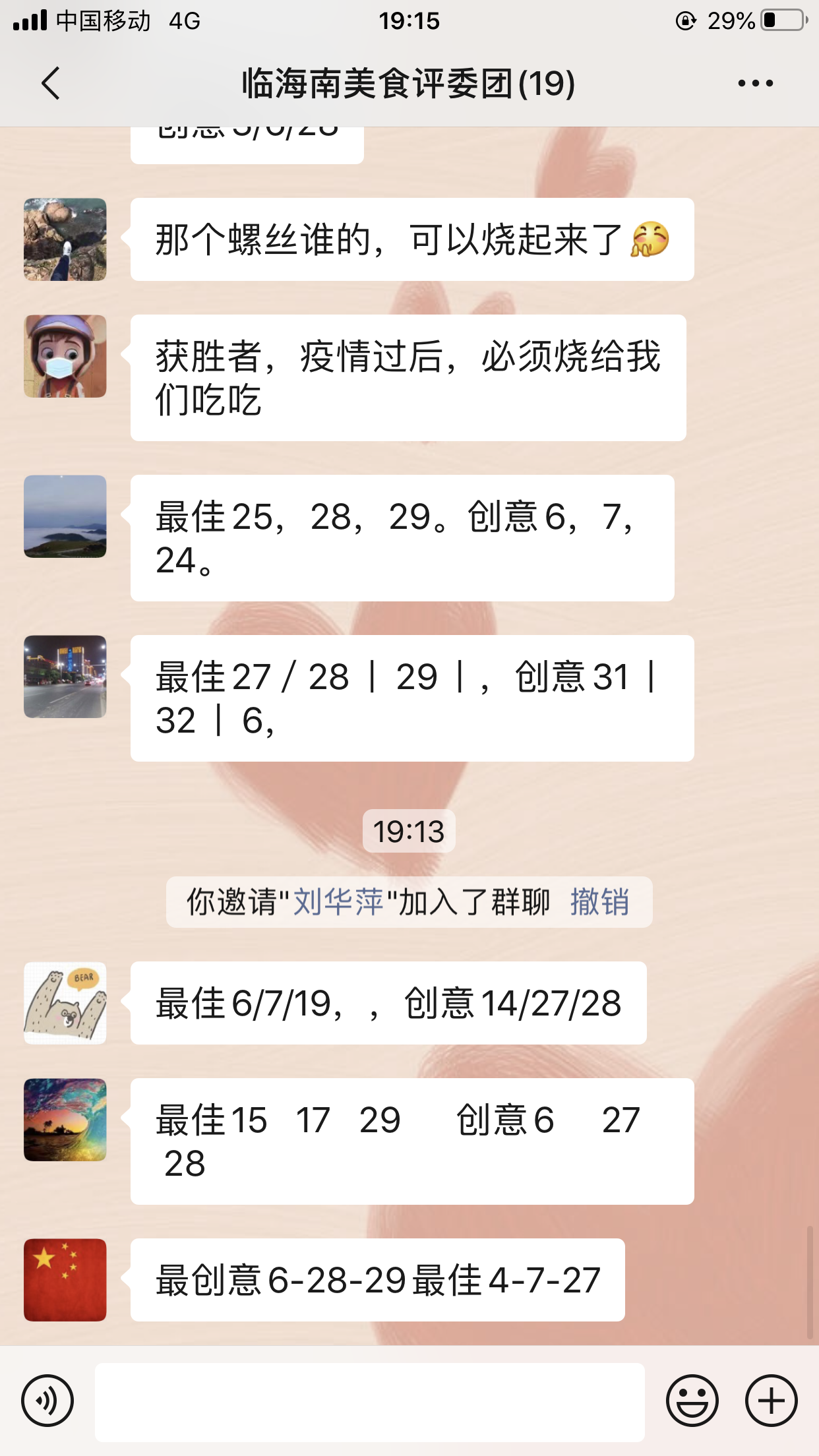 以廚會友、以食為樂 ——臨海南收費(fèi)所《抗擊疫情、巧手曬美食》線上廚藝大比拼 今年的“三·八”婦女節(jié)在全國上下全力抗擊新冠肺炎疫情的緊要關(guān)頭悄然來臨,為最大限度減少傳播風(fēng)險,3月13日,臨海南收費(fèi)所開展了《抗擊疫情、巧手曬美食》線上廚藝大比拼活動,一展巾幗風(fēng)采。 此次廚藝大比拼采取“居家制作,微信群曬美食,投票評比”的方式進(jìn)行,首先由女職工們提前準(zhǔn)備食材,將自己制作完成的美食成品以圖片形式發(fā)送到微信群中,最后由14位男職工組成的評委團(tuán),通過“色、形、難易程度”三個方面進(jìn)行投票評比。