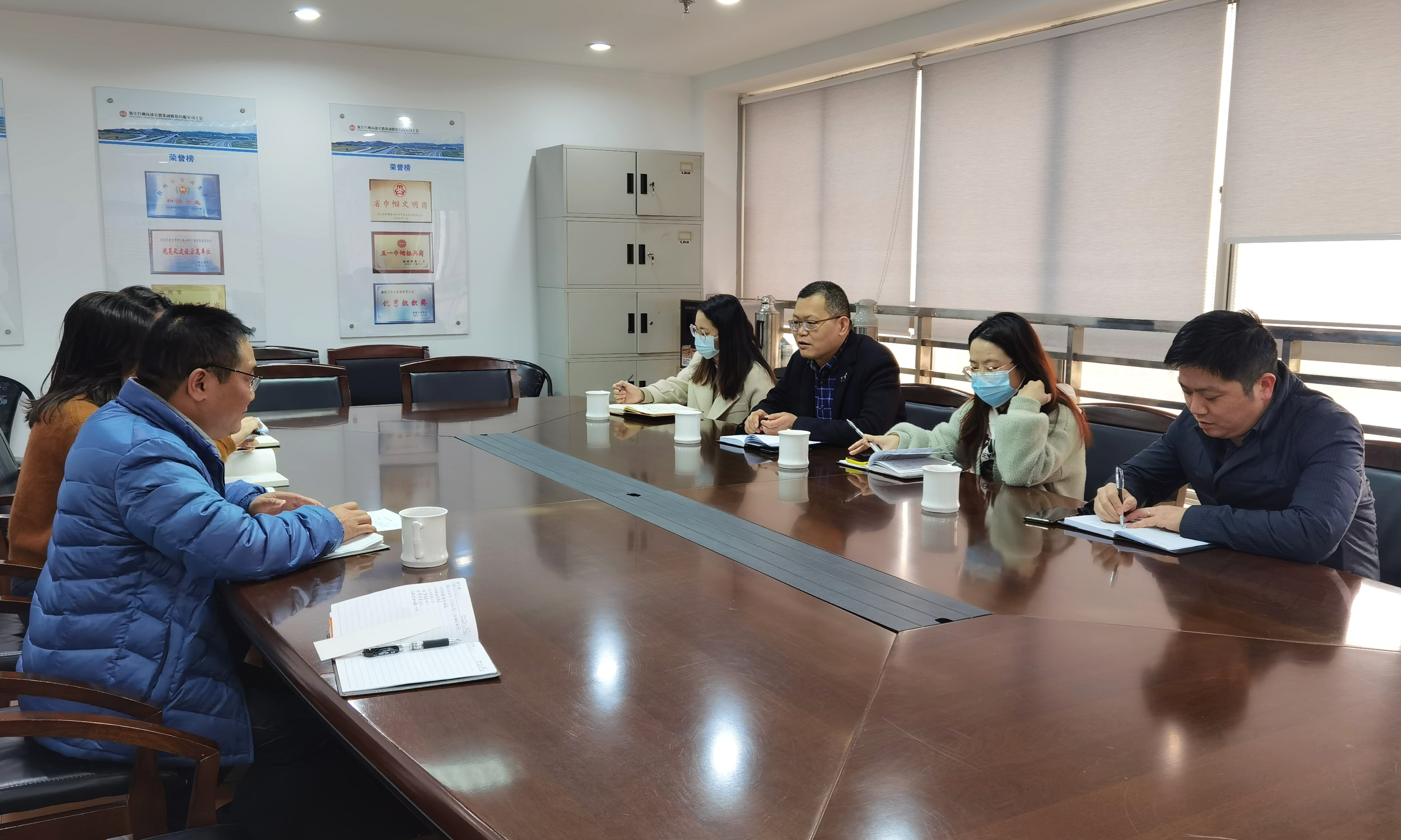 王華軍一行首先表明了來意,主要是征求考核修改意見和推進(jìn)一企一品的黨建品牌建設(shè)。公司黨群部負(fù)責(zé)人王益民對(duì)來訪者表示歡迎,并介紹了高速集團(tuán)黨組織今年的活動(dòng)開展計(jì)劃,同時(shí)對(duì)今年的黨建考核辦法提出了意見建議。 近年來,公司深入貫徹學(xué)習(xí)習(xí)近平新時(shí)代中國特色社會(huì)主義思想,持續(xù)開展“不忘初心,牢記使命”主題教育,堅(jiān)持以“黨建+”業(yè)務(wù)為黨建活動(dòng)載體,取得了較好的成績。 王華軍一行對(duì)公司黨建工作給予充分肯定,并希望臺(tái)州高速集團(tuán)這家老牌國企能夠一如既往高度重視黨建工作,鼓勵(lì)支部走出去,開展形式多樣的主題黨日活動(dòng),增強(qiáng)黨組織生活的儀式感、凝聚力,力爭黨建工作再上新臺(tái)階。 徐夢燁