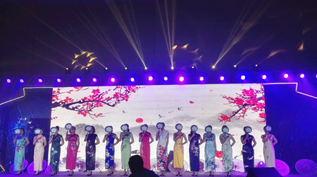 圖為旗袍秀現(xiàn)場(chǎng) 晚會(huì)一開(kāi)場(chǎng),由椒江區(qū)前所街道前所村(全國(guó)文明村)表演的鑼鼓舞《歡慶新時(shí)代》馬上將觀(guān)眾帶入到熱烈的氣氛中。隨后,各家單位選送的15個(gè)節(jié)目以小品、舞蹈等多種形式,展示學(xué)習(xí)貫徹落實(shí)十九大的成績(jī),歌頌新時(shí)代黨領(lǐng)導(dǎo)下的新氣象。 公司員工包德福代表公司參加晚會(huì),獨(dú)唱歌曲《天際》,其動(dòng)聽(tīng)的歌聲贏(yíng)得了現(xiàn)場(chǎng)觀(guān)眾的陣陣掌聲和喝彩。 周茂森