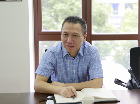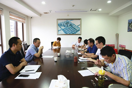 圖為集團副董事長、總經(jīng)理張建平認真聽取相關人員下階段工作安排匯報