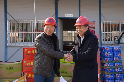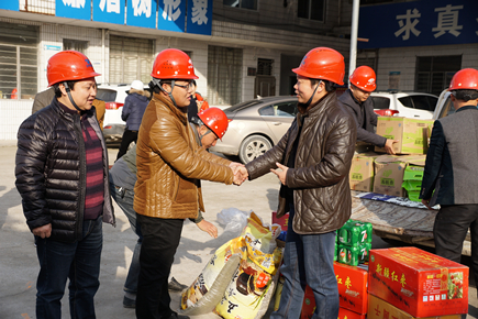 上圖為慰問現場 每到一個標段,慰問組都詳細了解項目當前施工情況以及春節(jié)期間的工作安排,為他們送上了慰問品,對于那些臨近春節(jié)仍奮戰(zhàn)在工地一線的工人們,慰問組代表市政公司表達了衷心的感謝,并提早向全體工作人員致以新春佳節(jié)的祝福。 鐘彪指出,內環(huán)路(黃巖段)在2017年度建設時間緊,任務重,各項目部在搶抓工程進度的同時要注重安全生產,關心工人生活,保障工人人身和財產安全,特別是過年期間,各項目部負責人和值班人員要保持24小時通訊暢通,保證各項工作正常運轉,確保平安過節(jié)。 張琛