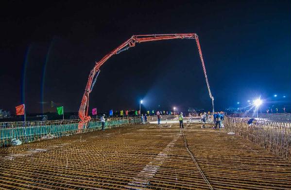 圖為4月21日凌晨,內(nèi)環(huán)路8#立交第二聯(lián)箱梁頂板澆筑場(chǎng)景。鐘 彪攝 8#立交工程位于黃巖區(qū)紅三村和紅四村,主線橋8#立交全長(zhǎng)1300多米,是臺(tái)州市首座全互通四層立交。東接九峰公園,西臨黃巖主城區(qū),上跨二環(huán)東路,南北連104國(guó)道,作為內(nèi)環(huán)路唯一一個(gè)位于城鄉(xiāng)接合部關(guān)鍵節(jié)點(diǎn),復(fù)雜的施工環(huán)境,繁瑣的交通組織,給工程的正常推進(jìn)帶來了嚴(yán)峻的考驗(yàn)?!拔覀?nèi)w參建人員根據(jù)現(xiàn)場(chǎng)情況不斷優(yōu)化方案,細(xì)化措施,狠抓落實(shí),連續(xù)作戰(zhàn),保證每月完成既定任務(wù)指標(biāo)。”8#立交項(xiàng)目現(xiàn)場(chǎng)負(fù)責(zé)人金小琳表示。 目前,8#立交主線橋梁順利貫通,離11月11日主線通車的目標(biāo)又邁進(jìn)了一大步。據(jù)臺(tái)州高速市政建設(shè)投資有限公司副總經(jīng)理何翔介紹,接下來的工作重心是在主體結(jié)構(gòu)完工的基礎(chǔ)上抓緊匝道及附屬構(gòu)筑物的施工,爭(zhēng)取讓臺(tái)州市民能盡早用上這條民心路。 (本文轉(zhuǎn)自《臺(tái)州日?qǐng)?bào)》2017年4月22日第01版) http://paper.taizhou.com.cn/tzrb/html/2017-04/22/content_794805.htmfrom=groupmessage&isappinstalled=1