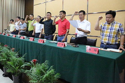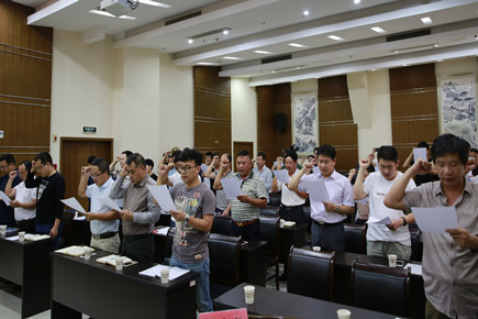 圖為主席臺領(lǐng)導(dǎo)宣讀誓詞