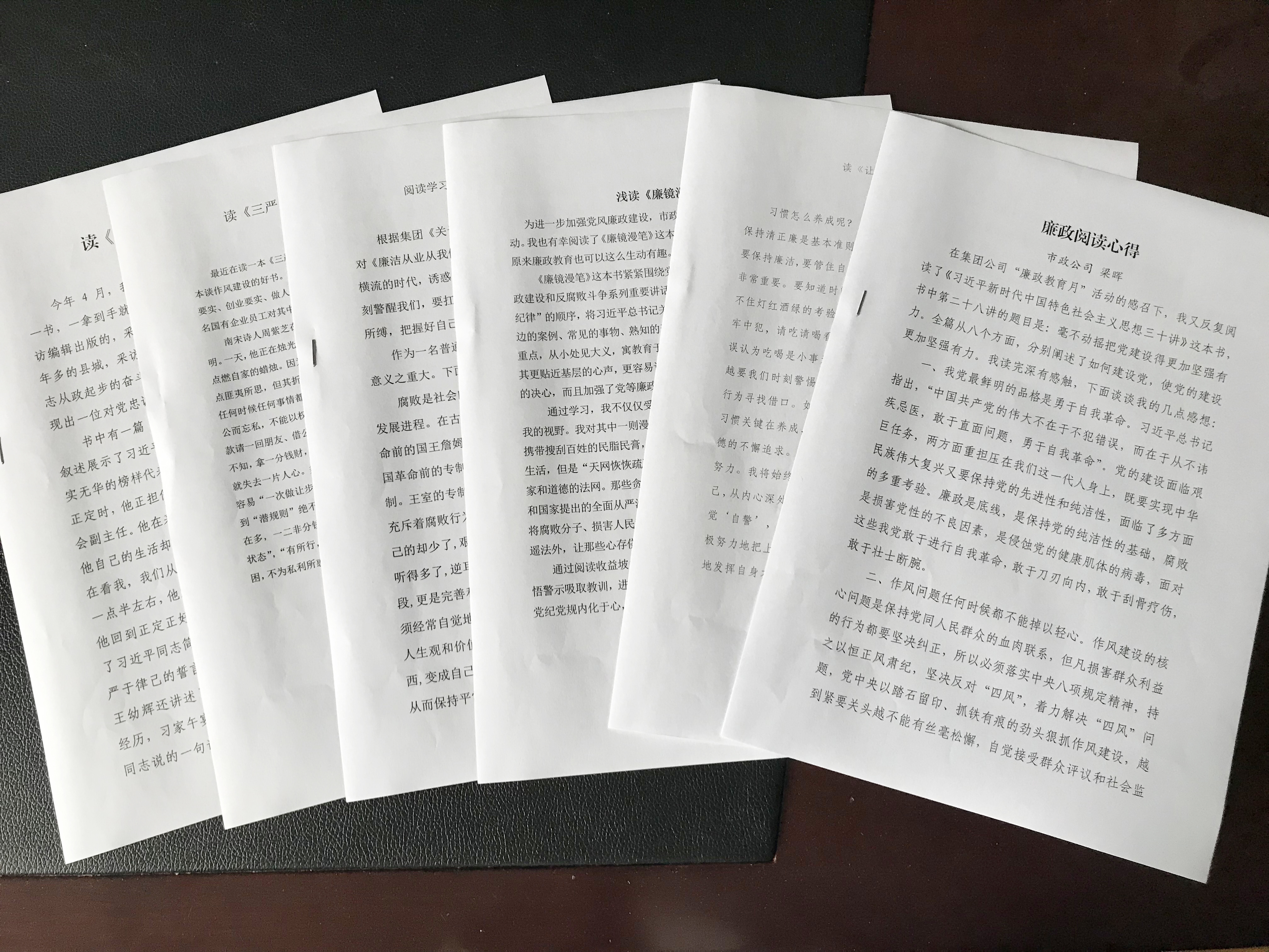圖為集中學(xué)習(xí)現(xiàn)場(chǎng) 每月月度例會(huì)上,市政公司組織員工有針對(duì)性地學(xué)習(xí)集團(tuán)和市政公司的制度與流程。該公司制作了一本制度匯編,并分發(fā)到人手一本,要求員工認(rèn)真學(xué)習(xí),熟悉公司辦事流程和規(guī)章,工作中做到照章辦事,增強(qiáng)員工的制度觀念。 5月月初,市政公司組織開展讀書思廉活動(dòng),要求每位員工讀一本勤政廉政書籍,并撰寫一篇讀書心得。從一篇篇心得體會(huì)文章中,看到有從歷史廉政小故事切入的,也有從習(xí)近平總書記的新時(shí)代中國(guó)特色社會(huì)主義思想和十九大報(bào)告中領(lǐng)悟道理的,字字流露了真情實(shí)感,句句體現(xiàn)出真切感悟,真正做到了學(xué)有所悟,營(yíng)造了良好的學(xué)廉思廉的氛圍。